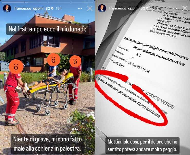 Basicamente publicando uma série de histórias onde Ele aparece deitado na cama Prontos para serem levados pelos ambulâncias (seus rostos estão obscurecidos pelo testamento de Francesco): “Esta é a minha segunda-feira. “Não há testes sérios, machuquei as costas na academia.”