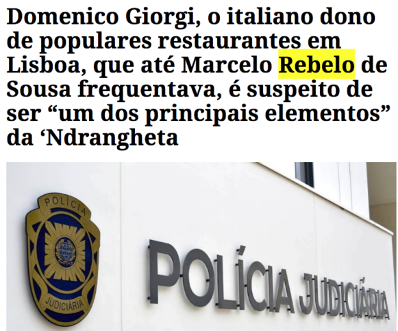 Rebelo de Sousa, um dos principais representantes da Frente de centro-direita portuguesa, relata Uma ocorrência diária, pelo menos três vezes no Prague Bistro e várias vezes no restaurante lisboeta de Sebastiano Giorgi. Quem fez reservas para o jantar sabia que precisava entrar em contato com “Berlusconi” para conseguir uma mesa. Nas palavras de seu filho Sebastiano, “Todas as formigas sabem que se meu pai não chega perto, nada se mexe”. (PPP)